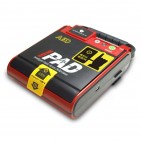 ❷切り替えスイッチでモード変更が可能で、成人・小児どちらでも同じ両用電極パッドで対応可能です。
